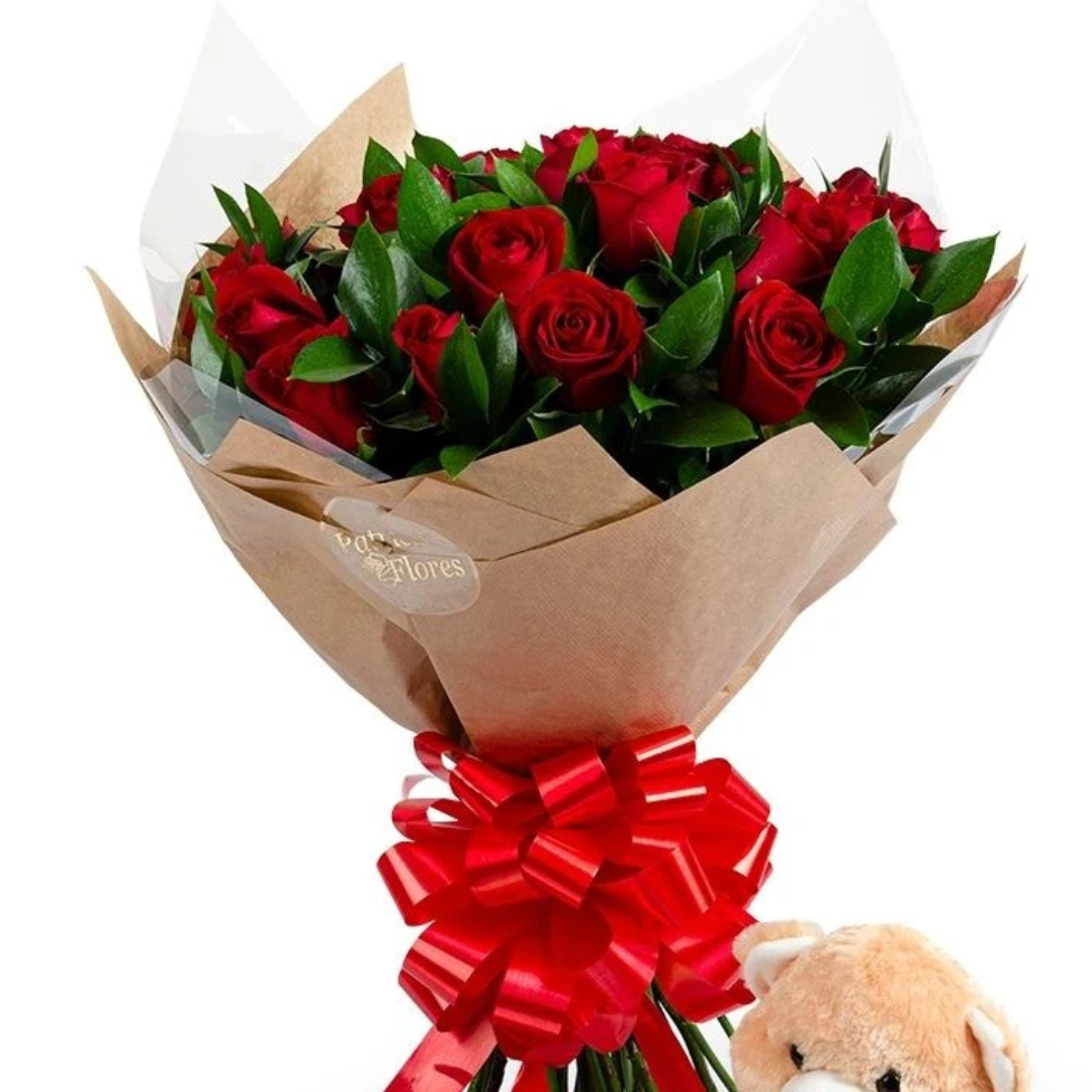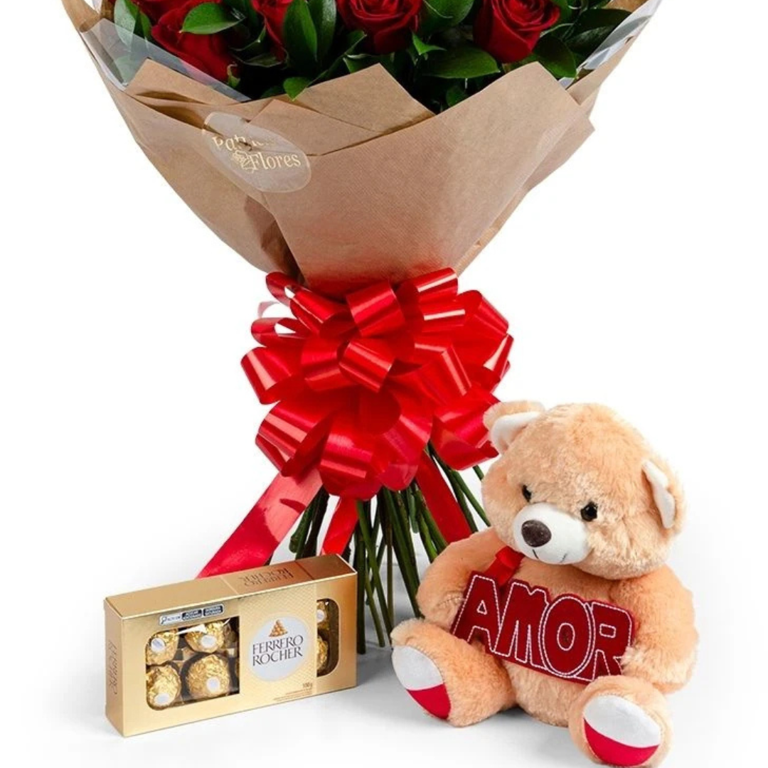 Acompanha pelúcia romântica e caixa de bombons Ferrero Rocher com 8 unidades.