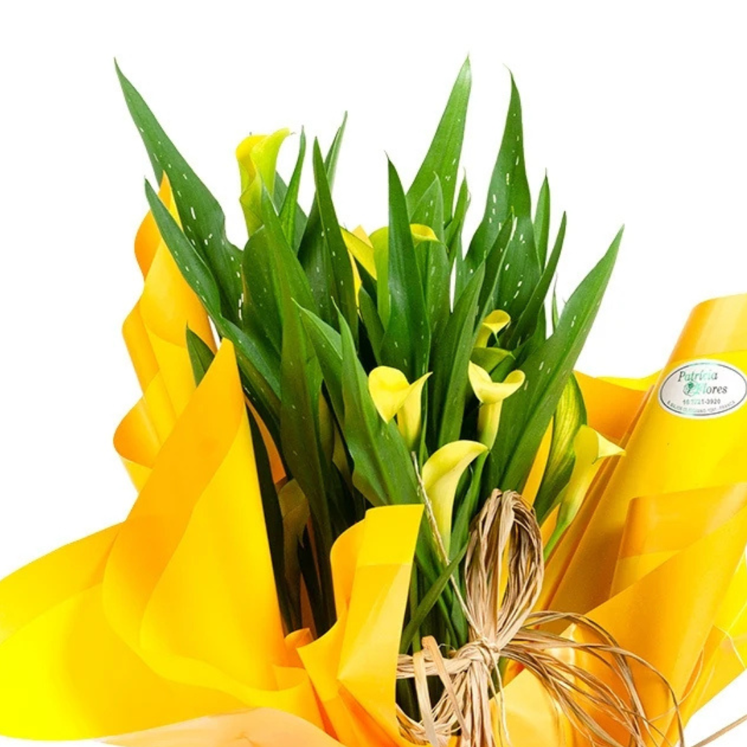 Vaso de calla embalada em cachepot kraft  e laço em tnt.